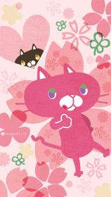春色、サクラがたくさん!fufu-necoのLive壁紙!黒いfufu-necoをタッチするとぴょんと出てくるよ☆