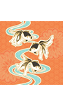 金魚と花をあしらった落着きのある和風デザイン。日本画調の金魚が優雅に泳ぎます。
